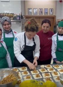 Türkmenistan Mantısı hakkında uygulamalı bilgi edinen aşçılık öğrencileri uygulamanın sonunda tadım yaptılar.